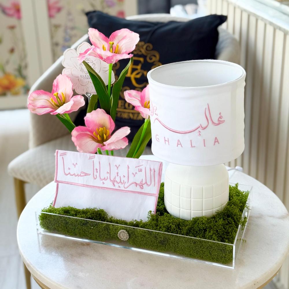 + ظرف قماشي بكتابة ( اللهم أنبتها نباتاً حسناً )